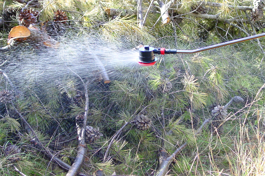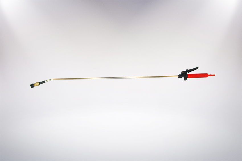 Lanza GENO para la aplicación de herbicidas, acoplable a diferentes mochilas. Puede utilizarse con Boquilla normal, boquilla de espuma o con cabezal Turbo. Con éste último se utiliza el mismo sistema que con el sistema ULV, pero mediante presión hidráulica.